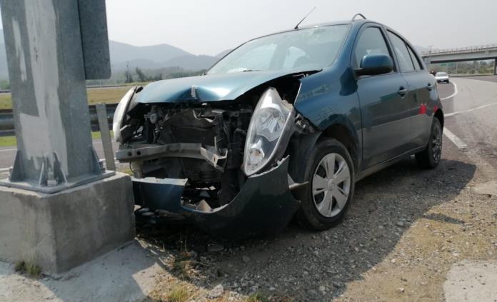 Iban a dar las 15:00 horas de este miércoles, cuando Nadia N., de 42 años de edad, con domicilio en el fraccionamiento Tecnológico de la ciudad de San Luis Potosí, chocó su automóvil Nissan March color azul, contra un poste con señalamientos viales, en el kilómetro 70 del libramiento Valles-Tamuín.