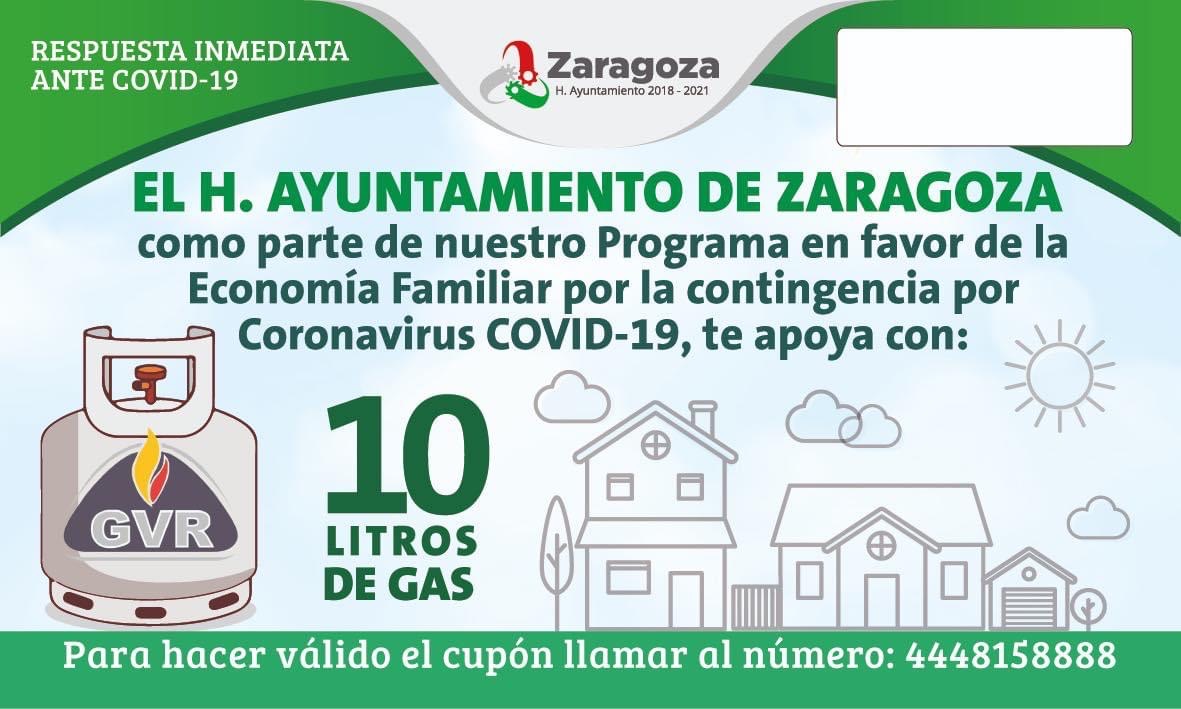 El Ayuntamiento de Zaragoza emite comunicado sobre apoyo a las familias que lo requieran, se les estará otorgando 10 litros de Gas LP a los que lo requieran como parte de su Programa en favor de la Economía Familiar por el coronavirus.