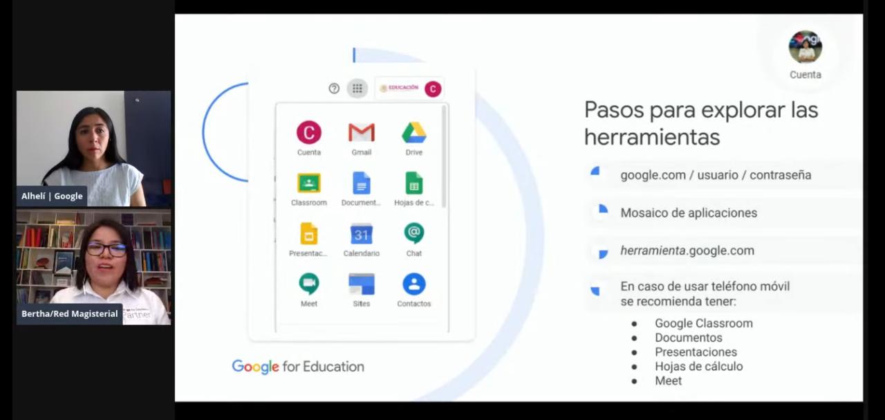 Destacó que se ha registrado un promedio de 25 mil docentes por cada seminario y mencionó que el primer «webinar” que se impartió, fue la presentación de la plataforma Google para la educación para preescolar y primaria baja (1o, 2o y 3o de primaria), el segundo fue primaria alta (4to, 5to y 6to) y secundaria. En ambos les mostraron cómo habilitar su clase a distancia con Google Classroom, las principales funciones para interactuar con los alumnos, asignar tareas, publicar recursos, evaluar y retroalimentar a los alumnos, además cómo usar y editar los contenidos de Red Magisterial que ya tienen precargados en su cuenta de G Suite y que están adaptados al currículum escolar.