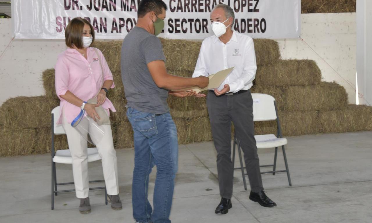 Previamente, Carreras López encabezó, junto a la Asociación Ganadera Local de Ciudad Valles, la entrega de apoyos del Programa Emergente para Enfrentar el Estiaje 2020, a ganaderos de la Huasteca potosina, a fin de mitigar los efectos negativos que ha provocado la escasez de lluvia en la región, para ello, la Secretaría de Desarrollo Agropecuario y Recursos Hidráulicos (SEDARH), canalizó 15 millones de pesos para apoyar, principalmente, en la adquisición de maquinaria e insumos alimenticios para ganado, en beneficio de 3 mil 750 productores agrícolas.