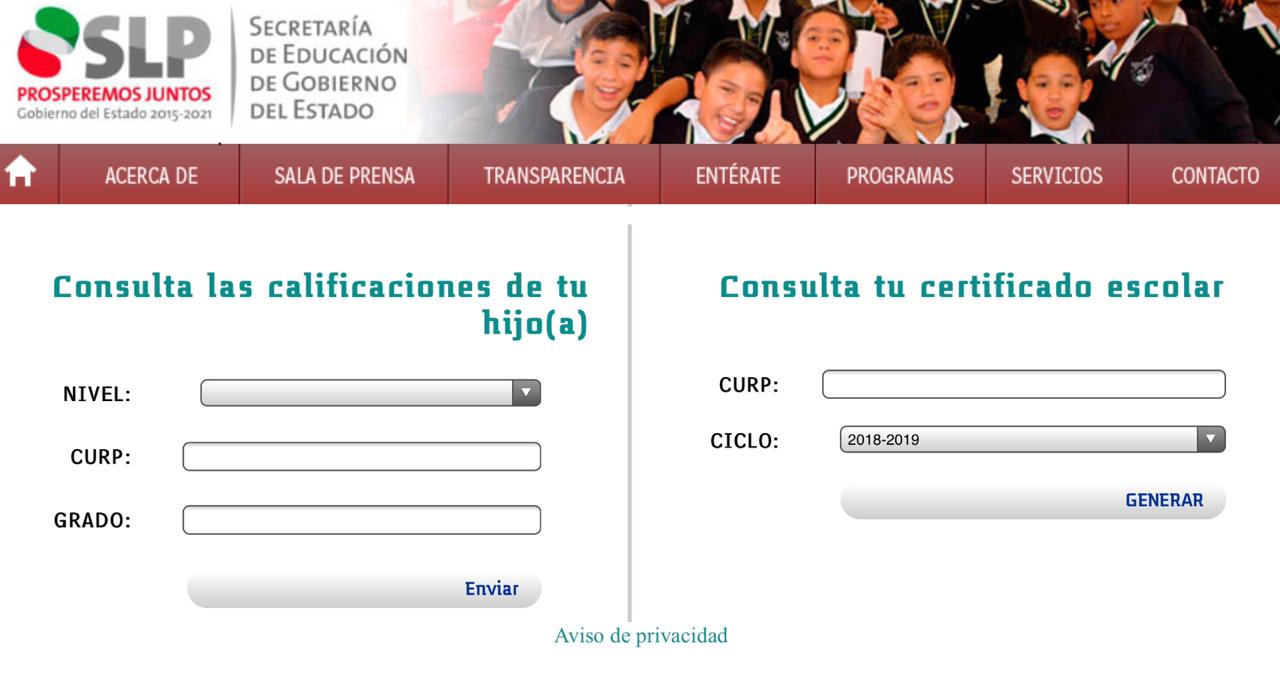 El Secretario de Educación de Gobierno del Estado, Joel Ramírez Díaz, informó que después de que se dio por terminado el ciclo escolar 2019-2020, inició la entrega virtual de calificaciones y certificados, las cuales pueden consultarse en las páginas: seslp.gob.mx, http://cpte.gob.mx/calificaciones/ y en la aplicación para celular Calificaciones SLP, en ambos casos es un trámite completamente gratuito.
