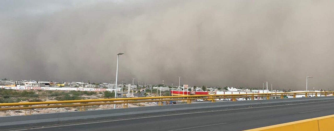 La mañana de este miércoles habitantes de Torreón fueron sorprendidos por una fuerte tolvanera, provocada por rachas de viento cargadas de polvo y tierra de la zona, mismas oscurecieron el cielo por varios minutos.