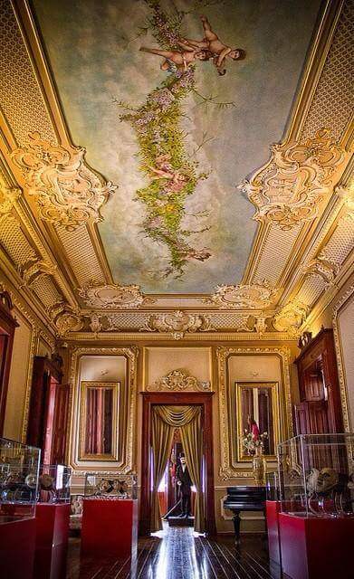 Espléndido espacio para llevar a cabo conciertos, conferencias, presentaciones y actos sociales enmarcados por los majestuosos murales realizados por los artistas italianos Compiani y Molina. En sus plafones se aprecian estucos con temas mitológicos y pinturas con temas relativos a la recolección de frutos, caza y pesca.