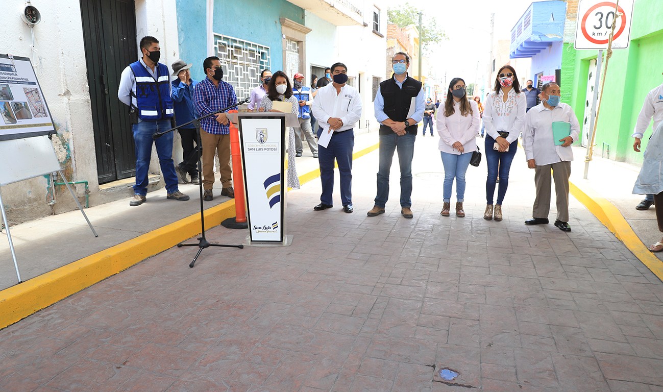 Cabe señalar que con un volumen de obra de más de 601 metros cuadrados que abarcan la calle Ponciano Arriaga entre Moctezuma y Eje Vial y una inversión total de un millón 656 mil 641 pesos, se rehabilitó la pavimentación con concreto hidráulico estampado de 15 centímetros de espesor.