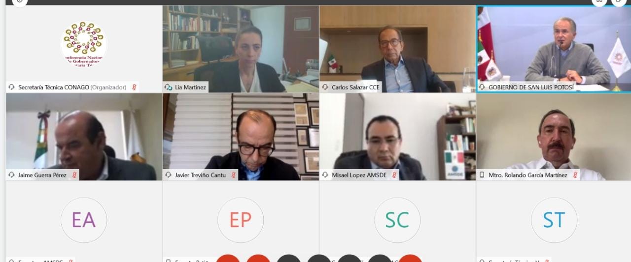 El Presidente de la Conferencia Nacional de Gobernadores (Conago) y Gobernador de San Luis Potosí, Juan Manuel Carreras López, se reunió de forma virtual con el Presidente del Consejo Coordinador Empresarial (CCE), Carlos Salazar Lomelín, para analizar estrategias de reactivación económica en el contexto de la crisis sanitaria y políticas públicas de atracción de inversiones al país.