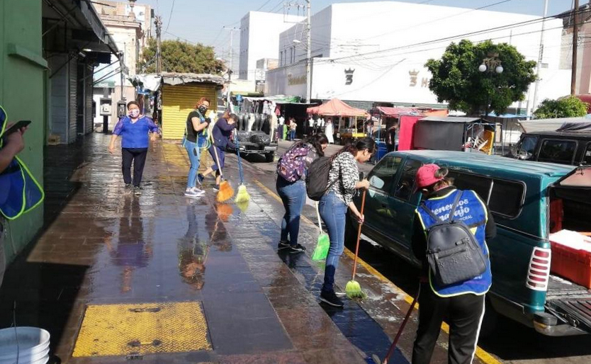 Las actividades que se realizaron son la limpieza de las cortinas de comercios, limpieza de vidrios de las ventanas y la limpieza profunda de los pisos en pasillos del mercado, además de los baños públicos y la desinfección de los pasamanos de las escaleras, además del lavado de la explanada de la entrada principal.