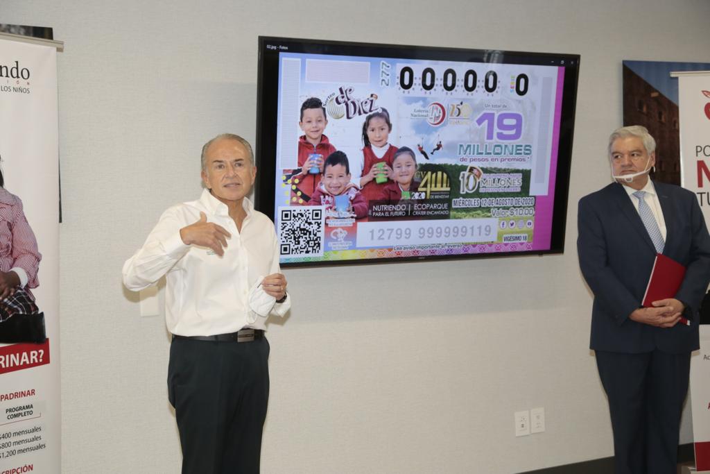 Tras una reunión que sostuvo el Gobernador del Estado, Juan Manuel Carreras López, con el Director General de la Lotería Nacional y Pronósticos para la Asistencia Pública, Ernesto Prieto Ortega, así como con directivos de Grupo Valoran, en la que se dieron a conocer las actividades de las fundaciones “Nutriendo para el futuro” y “Armadillo”, se realizó la develación del billete conmemorativo del sorteo que se llevará a cabo el 12 de agosto de 2020.