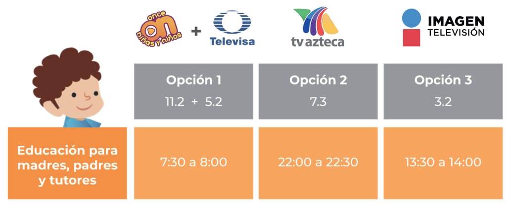 por parte de SEP, la programación quedaría de la siguiente manera: para padres de familia
