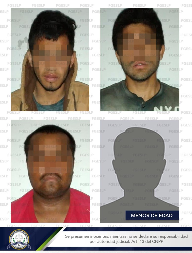 Al lograr controlar la situación, se realizó el aseguramiento de los hombres identificados como Gilberto “N” 27 años, Lázaro “N” 25 años, un menor de 17 años, los tres originarios del estado Durango, además de José Alejandro “N” de 28 años, originario de Zacatecas, a los cuales se les informó que serían detenidos y puestos a disposición del Ministerio Público correspondiente.
