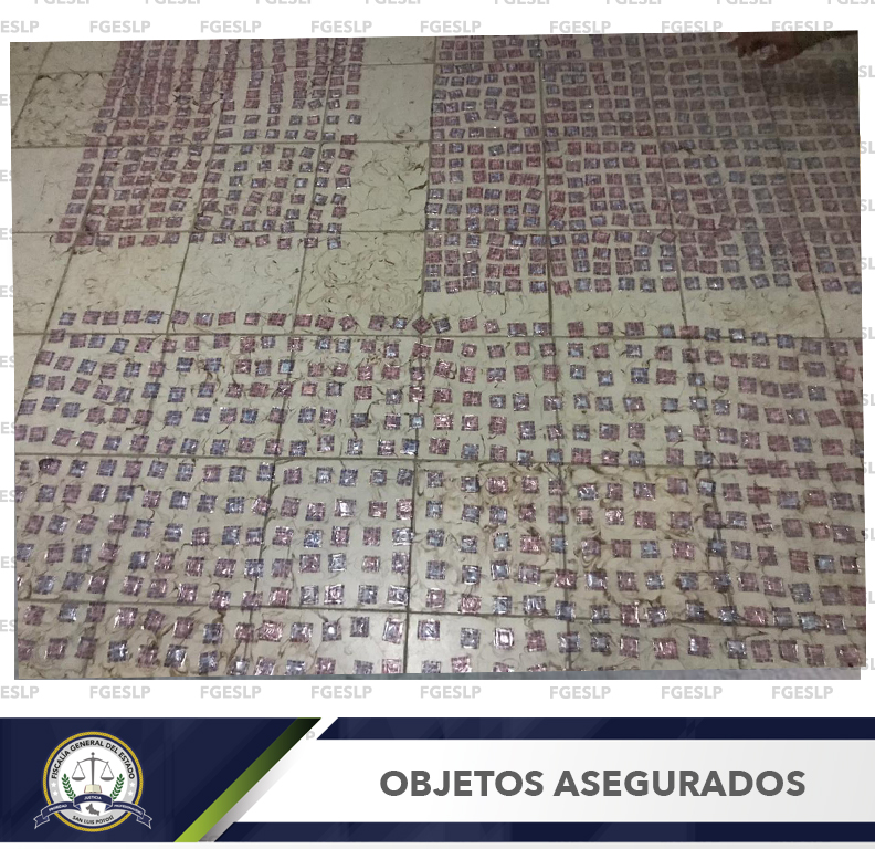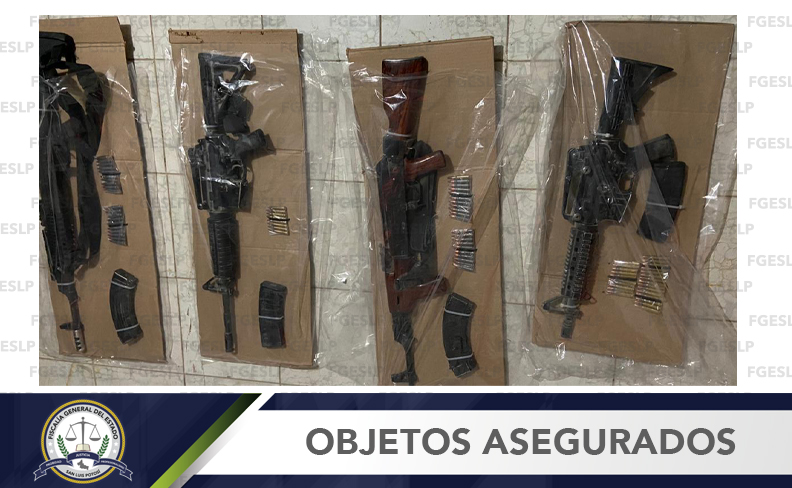 En este operativo se logró el aseguramiento de cuatro armas de fuego largas, equipo táctico además de 2482 dosis de la sustancia conocida como cristal, 485 dosis de polvo blanco con características de cocaína y 200 dosis de hierba seca verde con similitudes a la marihuana, lo que da un total de 3 mil 167 envoltorios de esas drogas.