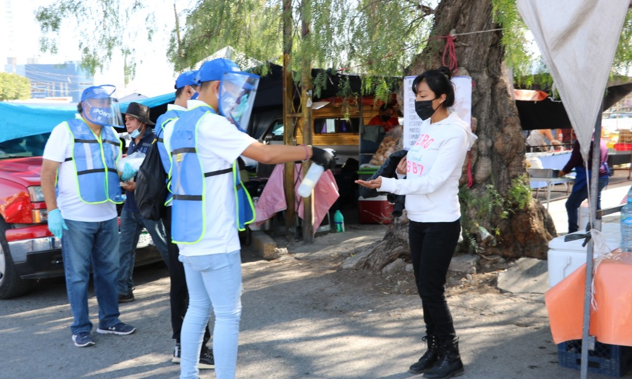 Desde el pasado 31 de mayo, Gobierno municipal está implementando una estrategia de intervención en el tianguis El Rebote “Las Vías” para la promoción de medidas sanitarias ante COVID-19.