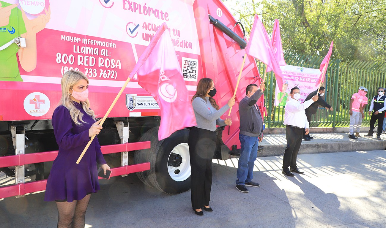 Añadió que estas acciones se realizan para fomentar en las mujeres, una cultura para la detección de cáncer de mama de manera oportuna, con esta finalidad se han emprendido diversas acciones que los potosinos podrán ver durante todo octubre: Se han rotulado camiones de carga trasera con un mensaje de concientización; se realizó una alianza de trabajo con la Cruz Rosa, logrando alcanzar a miles de mujeres de escasos recursos brindando información para una detección temprana.