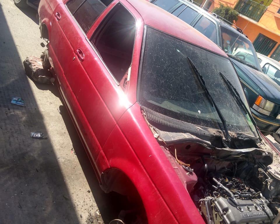 En Desierto del Sahara y San Francisco en la colonia Cactus se tiene contacto visual con un vehículo abandonado y con evidentes huellas de desvalijamiento.