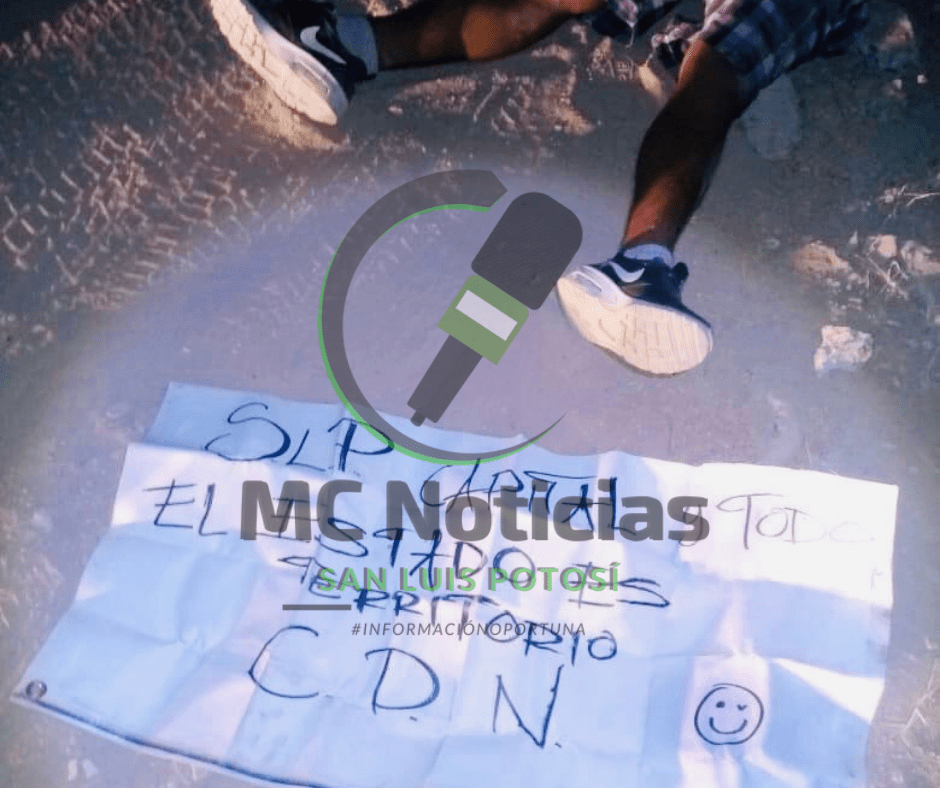 Una cartulina alusiva a la ejecución fue dejada junto al cuerpo sin vida del individuo con el texto: «SLP Capital y todo el Estado es territorio C.D.N.»