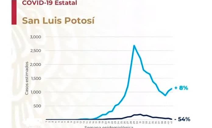 San Luis Potosí presentó una segunda semana de incremento de casos por COVID, por lo que la Secretaría de Salud del gobierno federal recomendó a las autoridades y a la sociedad tener en mente el riesgo de un rebrote.