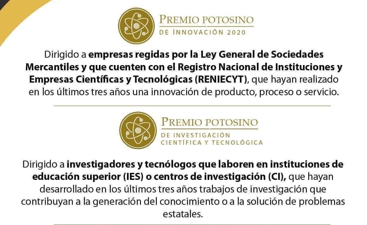 En lo que se refiere al Premio Potosino de Investigación Científica y Tecnológica 2020, la