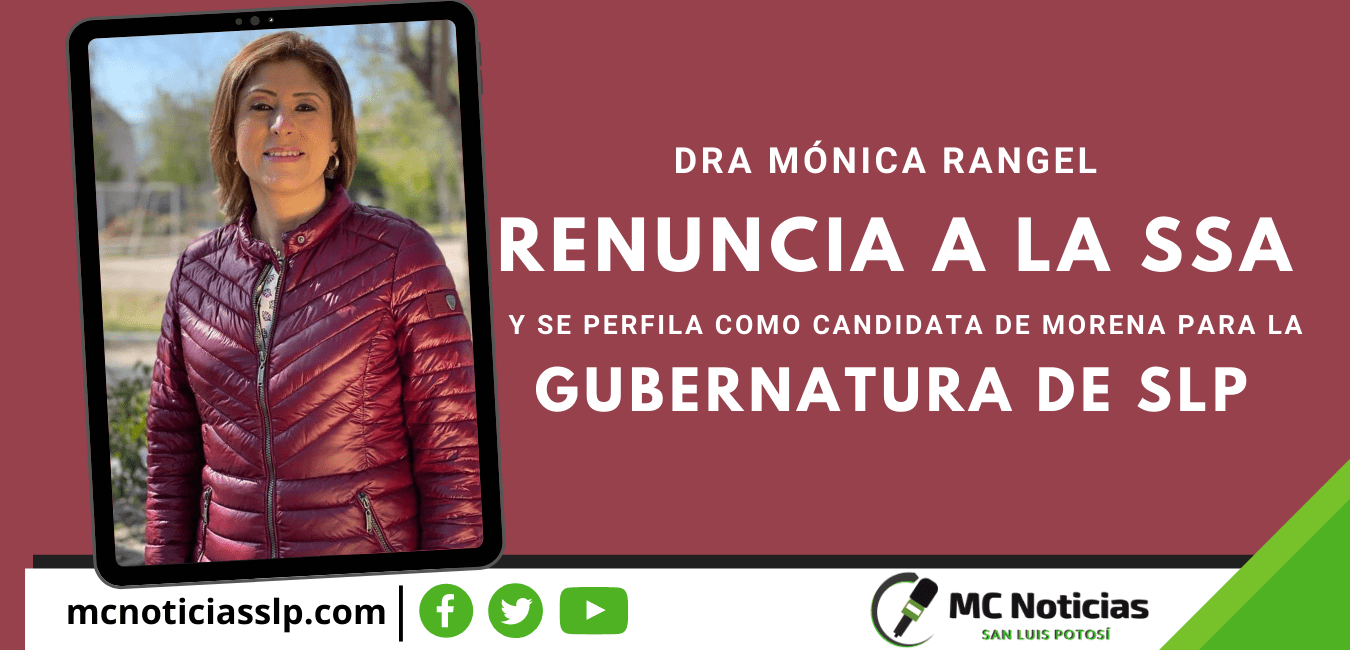 Este Martes 02 de Febrero 2021 por la noche, se oficializó la renuncia de la Dra Mónica Rangel como Secretaría de Salud en San Luis Potosí, más temprano fue llamada tambien por el líder nacional de MORENA para asistir al CEN en la CDMX para posicionarla como líder en las encuestas según se comenta.