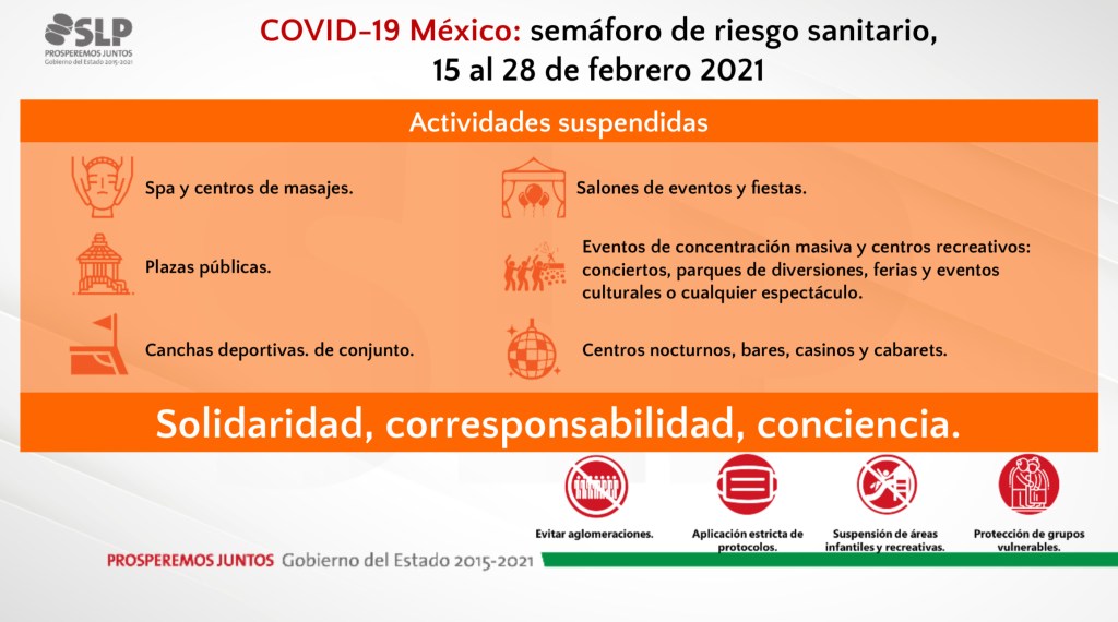 La mañana de este sábado 13 de febrero, la Secretaria de Salud del Estado anunció que la entidad potosina regresa a semáforo epidemiológico color naranja.