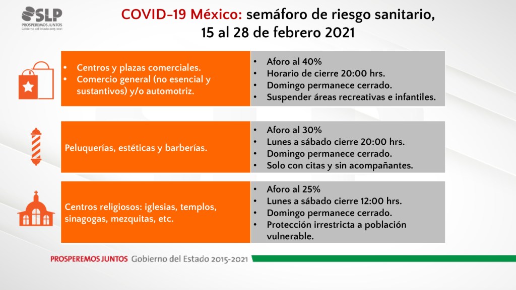 Como adelantó el Gobierno Federal el día de ayer, San Luis Potosí a bajado su riesgo epidemiológico y paso de semáforo rojo a naranja. Esto significa que las restricciones disminuirán en la entidad potosina.