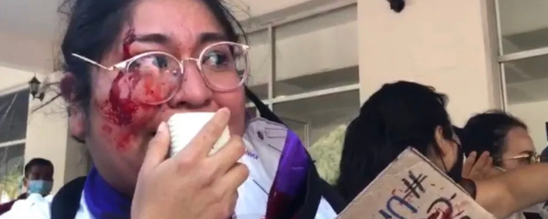 En las imágenes, puede verse a la mujer con sangre en el rostro y con sus gafas dañadas por lo que aparentemente fue un golpe.