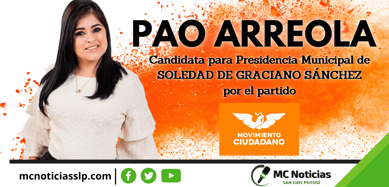 Este Domingo 28 de Febrero 2021, se hizo oficial que la diputada con licencia Paola Arreola buscará ganar la Presidencia Municipal de Soledad de Graciano Sánchez con la bandera del partido político, Movimiento Ciudadano.
