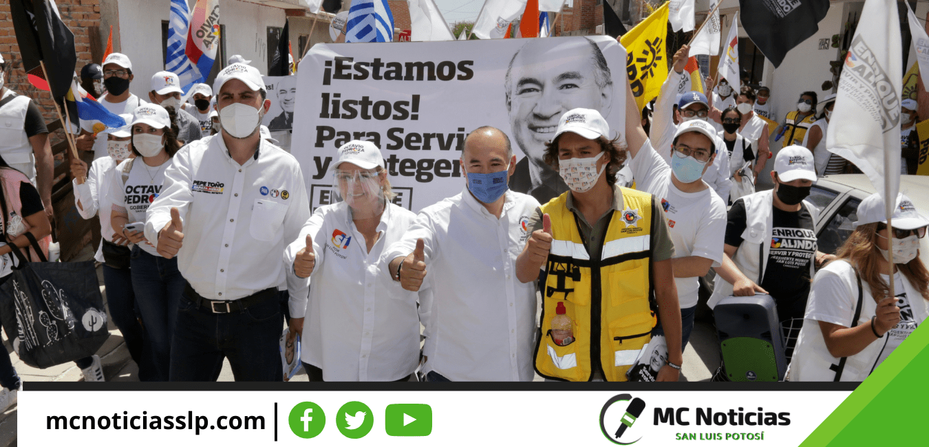 En compañía de los candidatos a diputada local por el Distrito V, Aranza Puente; y diputado federal por el distrito VII, José Antonio Meraz, el abanderado del PRI-PAN-PRD-PCP, Enrique Galindo Ceballos, escuchó empático las preocupaciones de los potosinos y ofreció soluciones a las mismas.