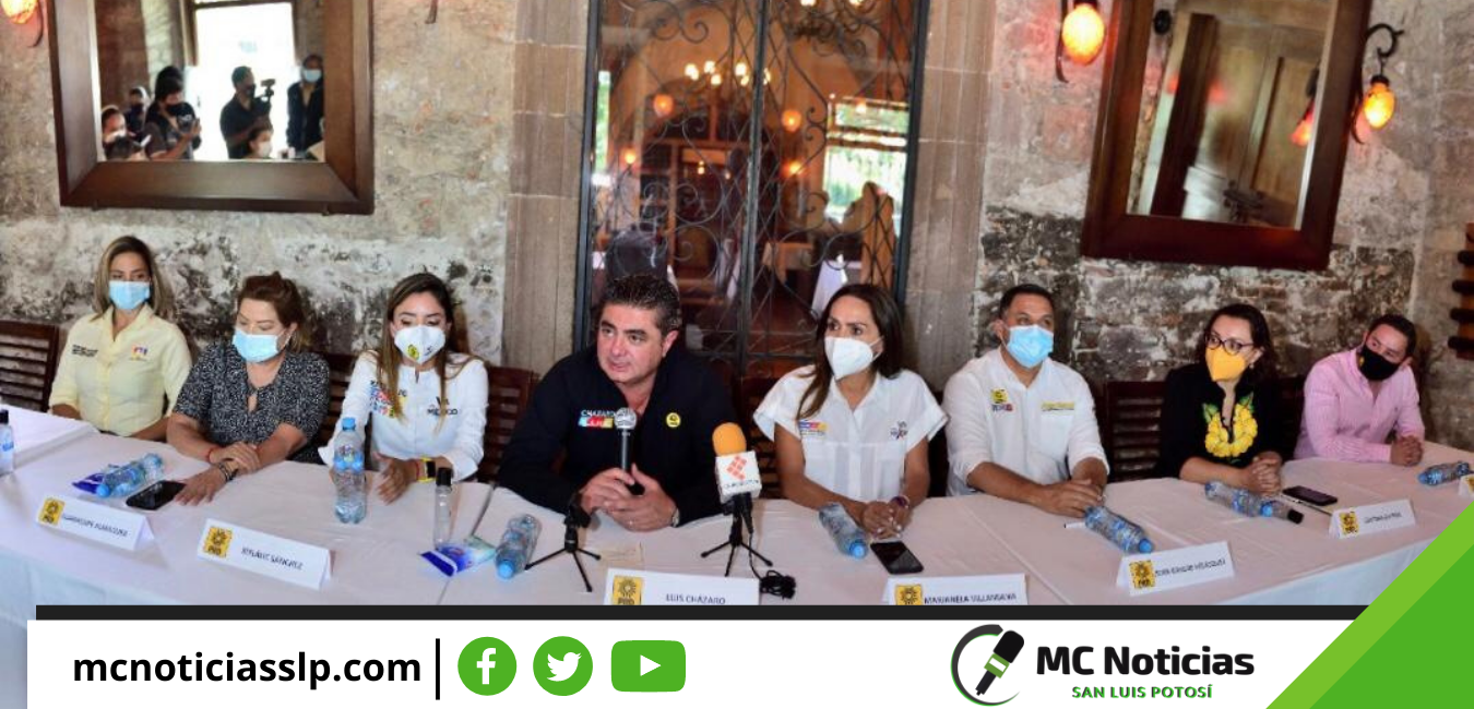 En esta conferencia de prensa también estuvieron presentes Juan Carlos Velázquez, candidato a la presidencia municipal de Soledad de Graciano Sánchez; Margarita Hernández Fiscal, candidata a diputada local por el 5to dtto; Marianela Villanueva, candidata a diputada federal por el 2do dtto; Xitlálic Sánchez, candidata a diputada federal por el 4to dtto; y Aldo Partida, candidato a la segunda diputación plurinominal.
