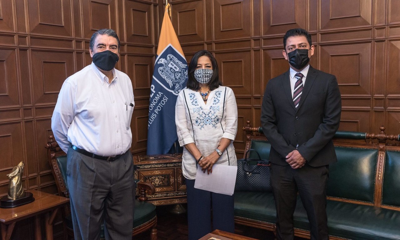 El rector de la Universidad Autónoma de San Luis Potosí (UASLP), Dr. Alejandro Zermeño Guerra, sostuvo una reunión con la Mtra. Laura Elena Fonseca Leal consejera presidenta del Consejo Estatal Electoral y de Participación Ciudadana (CEEPAC), con el objetivo de revisar los detalles del debate que se llevará a cabo el próximo domingo 9 de mayo a las 19:00 horas, con los nueve candidatos a la Gubernatura del Estado.