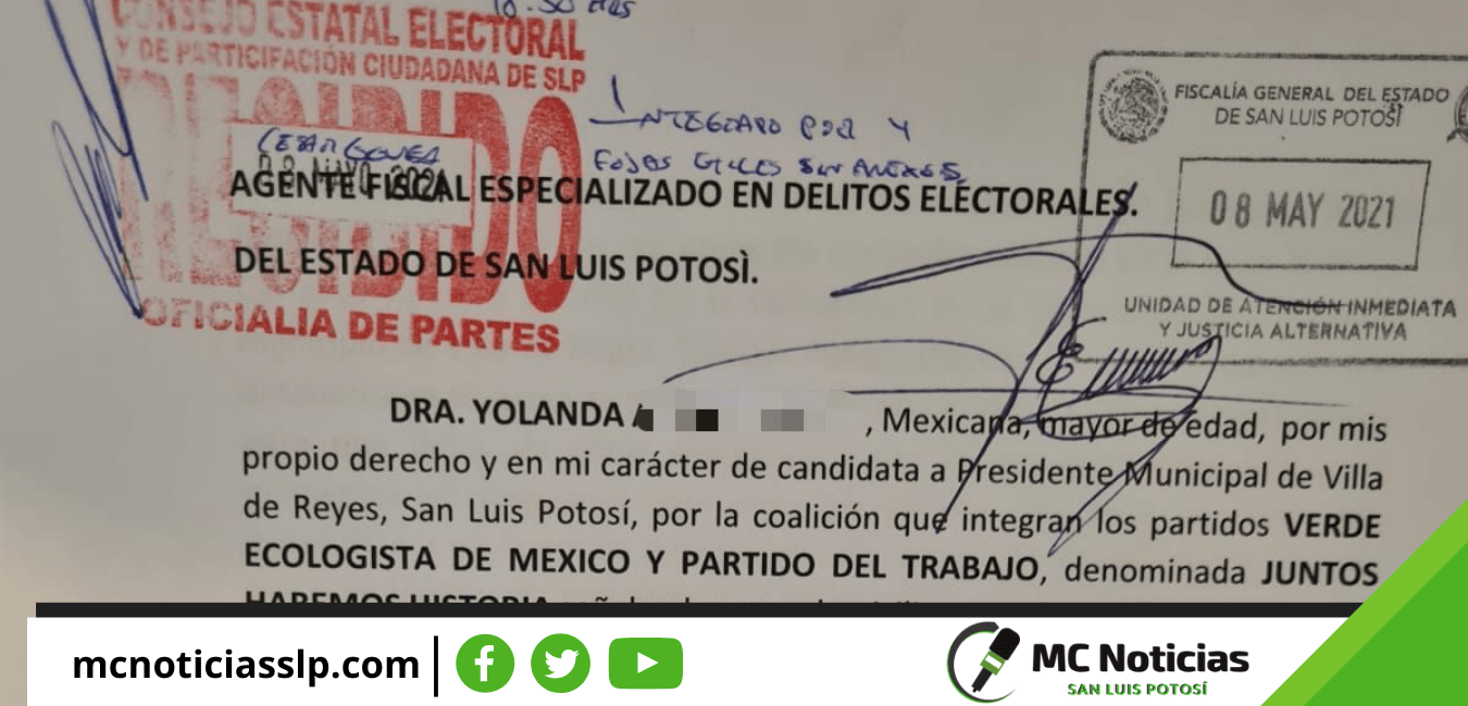 Yolanda Alvizo Rocha, candidata del Partido Verde Ecologista de México (PVEM) y Partido del Trabajo (PT) a la Presidencia Municipal de Villa de Reyes, presentó una denuncia en contra de quien resulte responsable de las amenazas y ataques sufridos la madrugada de este sábado 8 de mayo, además, solicitó medidas de protección y seguridad personal.