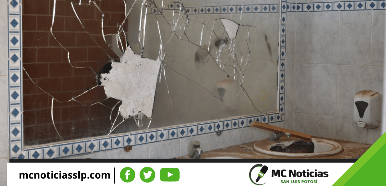 Haciendo el recorrido dentro del plantel, se encontró con salones quemados, robados, grafiteados y saqueados, baños destruidos y con espejos rotos, perillas robadas, además de las instalaciones de cableado y electricidad fueron sustraídas, así como bombas de agua que surtían el líquido vital a dichos planteles.