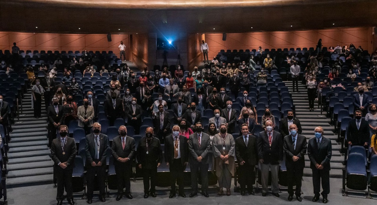 En evento que tuvo lugar en el Teatro del Centro Cultural Universitario Bicentenario, el doctor Alejandro Javier Zermeño Guerra, rector de la Universidad Autónoma de San Luis Potosí, estuvo acompañado por la maestra en Ciencias del Hábitat, Martha Lucía López Almaguer, secretaria de la Unión de Asociaciones de Personal Académico.