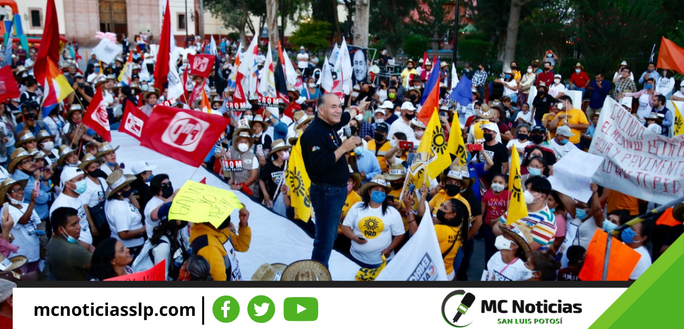 Enrique Galindo inició su recorrido con una gran marcha por las calles de la delegación, en la que a su paso se fueron sumando hombres y mujeres nativos del lugar, hasta llegar a la plaza principal donde los lideres María del Carmen Mendoza Rocha, Heladio Duarte Cervantes y Mauro Ríos le dieron la bienvenida, como anfitriones del evento; quienes le expresaron su confianza de que será el próximo Presidente Municipal de San Luis Potosí capital.