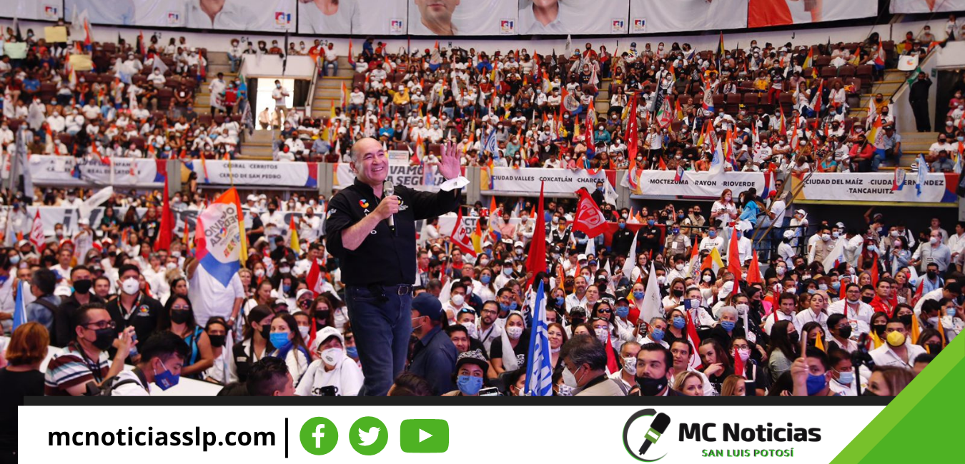En un gran cierre de campaña realizado en el Domo de la feria, el candidato a la presidencia municipal por la Coalición PRI-PAN-PRD-PCP, Enrique Galindo Ceballos señaló que llegó la hora de la gente, de la unión, del progreso, de servir y proteger a las familias; convocó a construir juntos una ciudad digna y segura para nuestros hijos, “porque este es nuestro tiempo, nuestro momento, por eso yo los invito a que gobernemos juntos, unidos por San Luis Potosí”.