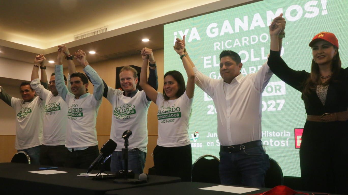 Respaldaron esta declaración Karen Castrejón Trujillo, presidenta nacional del Partido Verde Ecologista de México (PVEM); Arturo Escobar y Vega, diputado federal y vocero de la campaña de Ricardo Gallardo Cardona; Geovanna Bañuelos, Senadora del Partido del Trabajo; Francisco Elizondo Garrido, delegado nacional en funciones de Secretario General del PVEM en San Luis Potosí y todo el equipo de campaña que hizo posible este triunfo histórico.