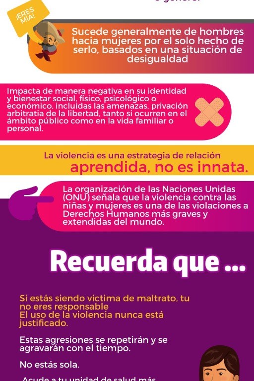 Finalmente, la dependencia de Salud Pública pide recordar que: si vive algún tipo de violencia o se tiene alguna duda, acudir a tu centro de salud más cercano o contactar al teléfono 8-34-11-00 en la extensión 21218.