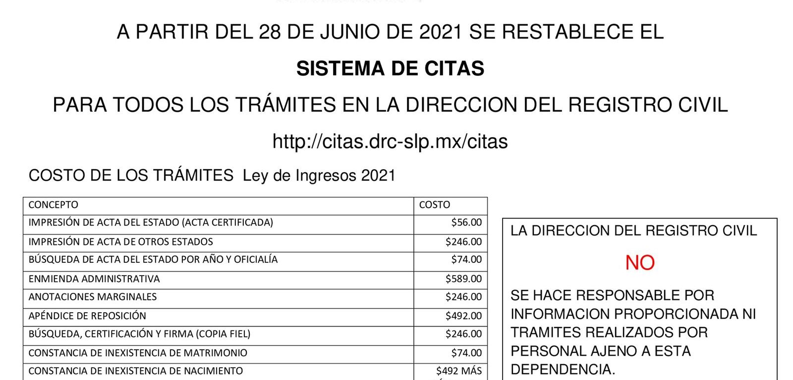 Además, el portal http://sisactas.drc-slp.mx/citas/servicios/actas continúa dando atención