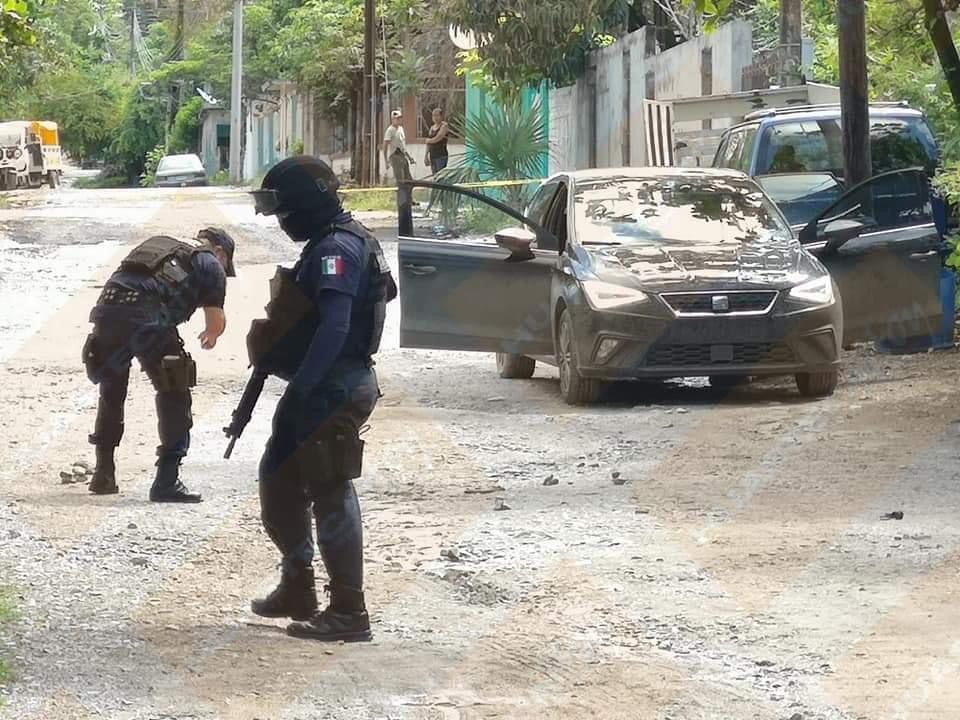 Dentro del sedán, del lado del copiloto, había un hombre con heridas producidas por proyectiles de arma de fuego, y del lado del conductor, en el suelo, estaba otro hombre, también baleado.