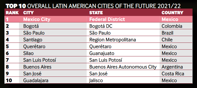 las 10 ciudades Latinoamericanas del Futuro, bajo criterios que midieron el potencial