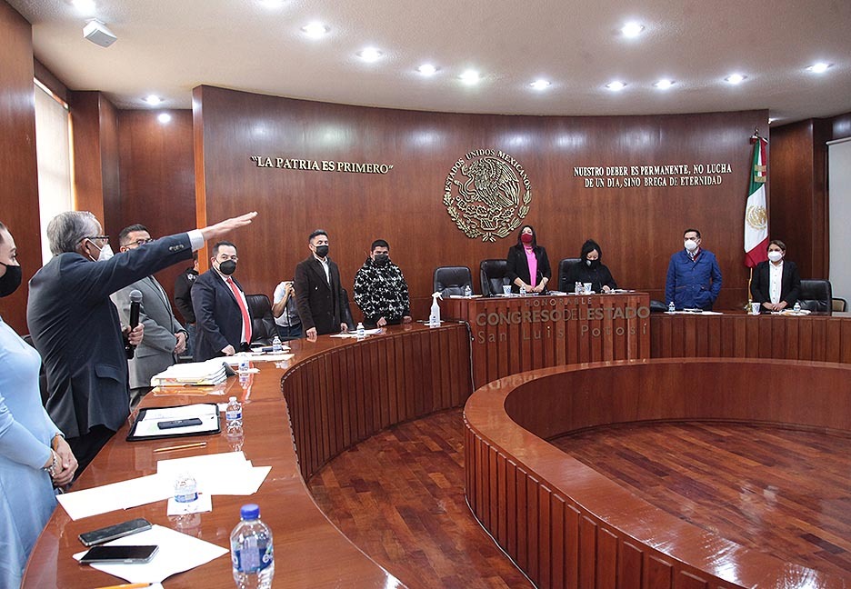 Los titulares de la Secretaría de Desarrollo Urbano, Vivienda y Obras Públicas (SEDUVOP), Leopoldo Stevens Amaro y de la Oficialía Mayor de Gobierno del Estado, Miguel Ángel Carbajal Martínez, comparecieron ante las diputadas y los diputados integrantes del Congreso del Estado, para explicar públicamente el incumplimiento de las Recomendaciones 3/2017 y 22/2018, ambas emitidas por la Comisión Estatal de Derechos Humanos del Estado de San Luis Potosí.