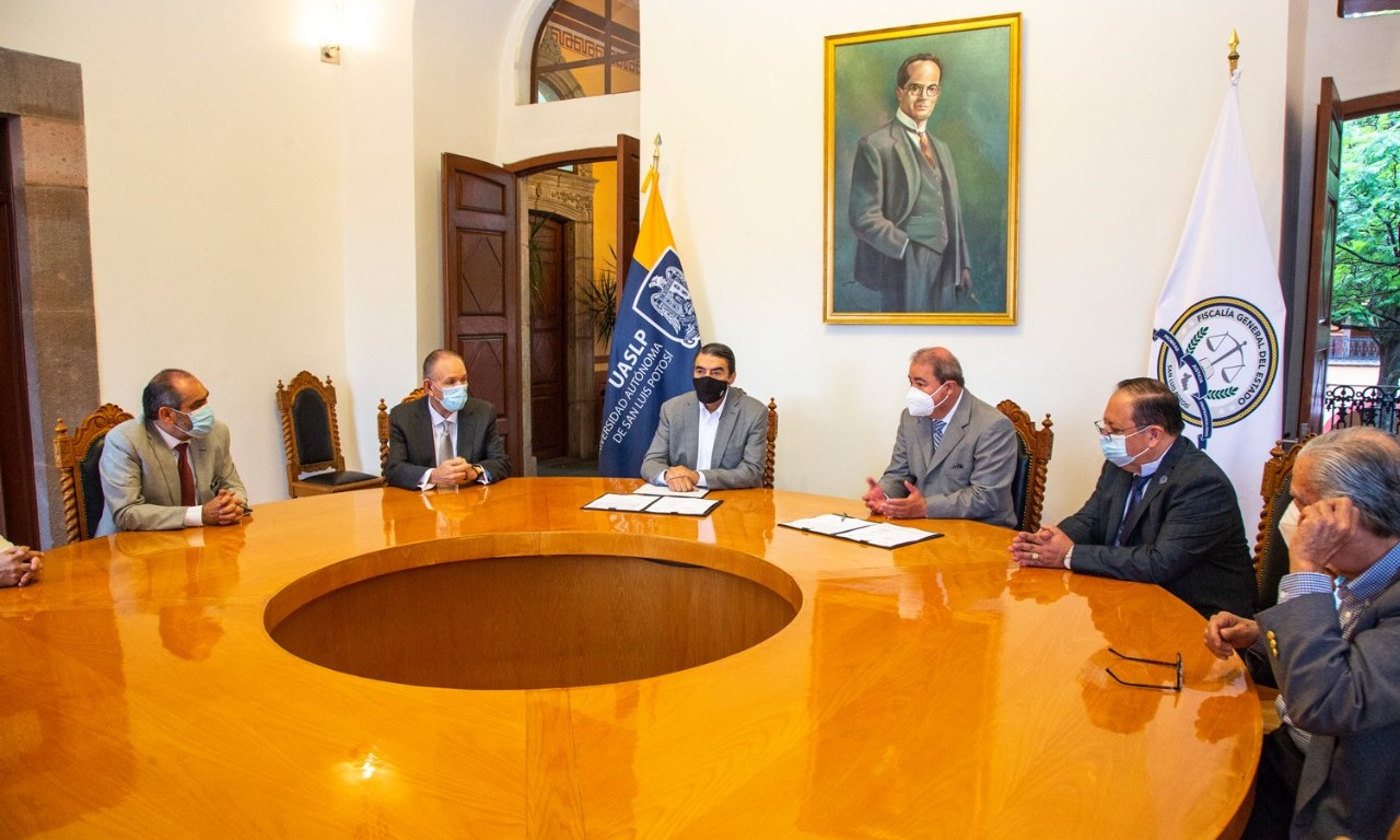 La Universidad Autónoma de San Luis Potosí (UASLP) signó convenio de colaboración marco con la fiscalía general del Estado (FGE), con el objetivo de elevar el nivel de capacitación de los estudiantes para que cuenten con la oportunidad de desarrollarse plenamente en la vida profesional.