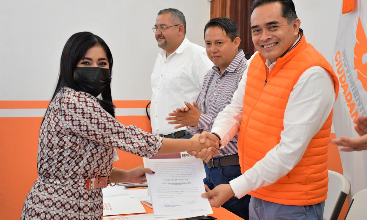 El Coordinador Estatal de Movimiento Ciudadano en San Luis Potosí, dip. Eugenio Govea, entregó las constancias de asignación emitidas por el Consejo Estatal Electoral y de Participación Ciudadana (CEEPAC) a las regidoras y regidores electos bajo las siglas de MC, quienes estarán sirviendo a sus conciudadanos en los Ayuntamientos por el periodo 2021 – 2024.