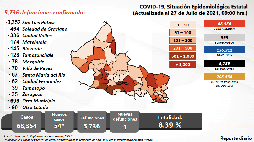 Los decesos subieron a 5 mil 736 con un índice de letalidad de un 8.39 por ciento de