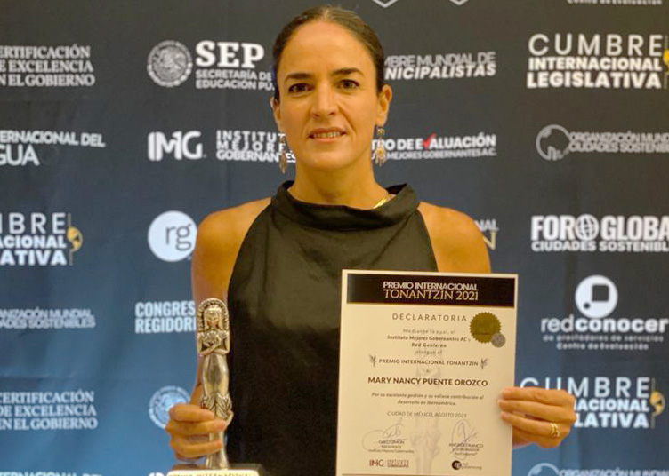 Por su contribución al bienestar de las familias potosinas, el Instituto Mejores Gobernantes, una organización civil con presencia internacional, hizo entrega del premio “Tonantzin 2021” a la presidenta del DIF Municipal, Nancy Puente Orozco, así como a la directora de la institución, Adriana Urbina Aguilar.