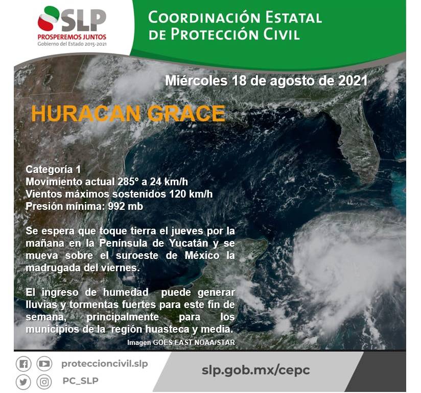 El funcionario estatal informó que “Grace” se ha intensificado a huracán de categoría 1 en