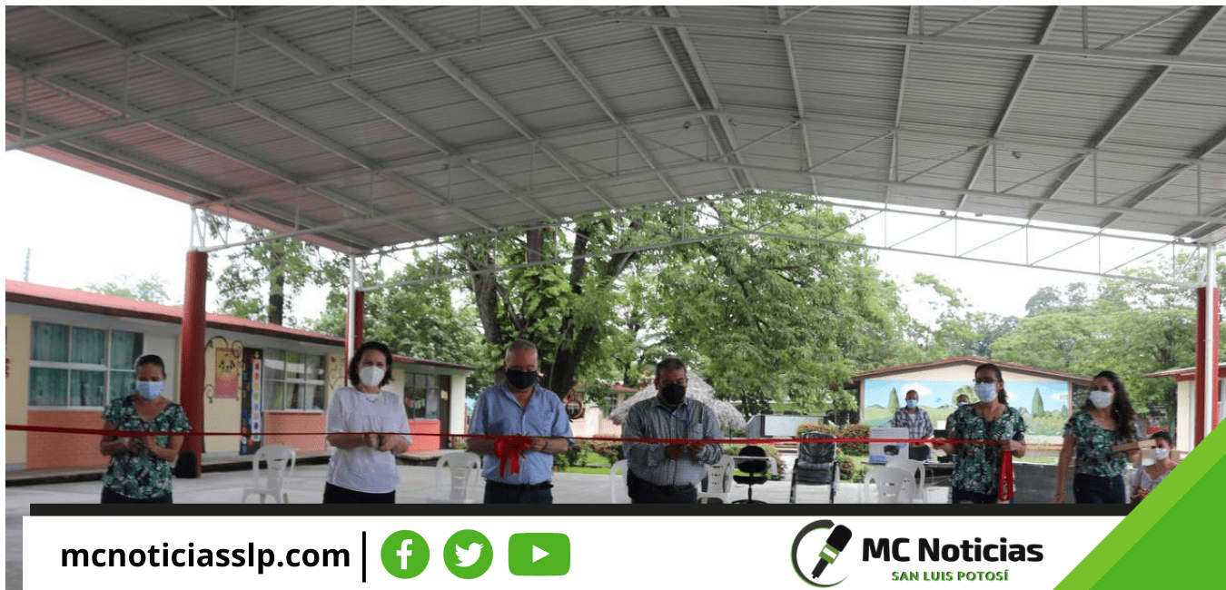 Posteriormente, se trasladó al municipio de Tanquián de Escobedo a la Escuela Primaria Benito Juárez, de la localidad la Sagrada Familia, para inaugurar la construcción del techado, la rehabilitación de la cancha de usos múltiple y la rehabilitación de la infraestructura física del plantel, todo esto con una inversión de más de 2 millones 281 mil pesos.