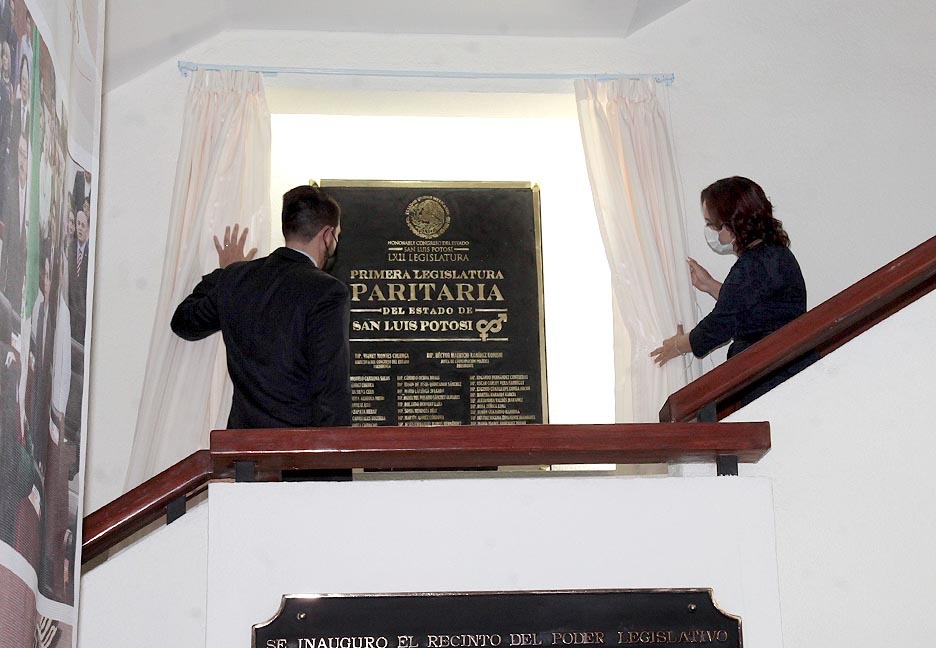 Para evocar la primera Legislatura Paritaria del Estado de San Luis Potosí, fue develada una placa conmemorativa en el vestíbulo del recinto legislativo de Jardín Hidalgo, en reconocimiento a la lucha por los derechos laborales, sociales, económicos y políticos de las mujeres.