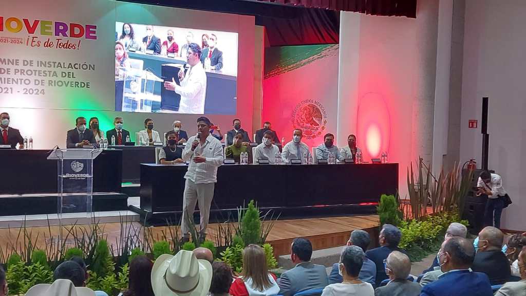 En sesión solemne de Cabildo y ante la presencia del Gobernador Ricardo Gallardo Cardona, la tarde de este viernes 1 de Octubre, tomó protesta como Presidente Municipal de Rioverde, Arnulfo Urbiola Román para el periodo 2021-2024.