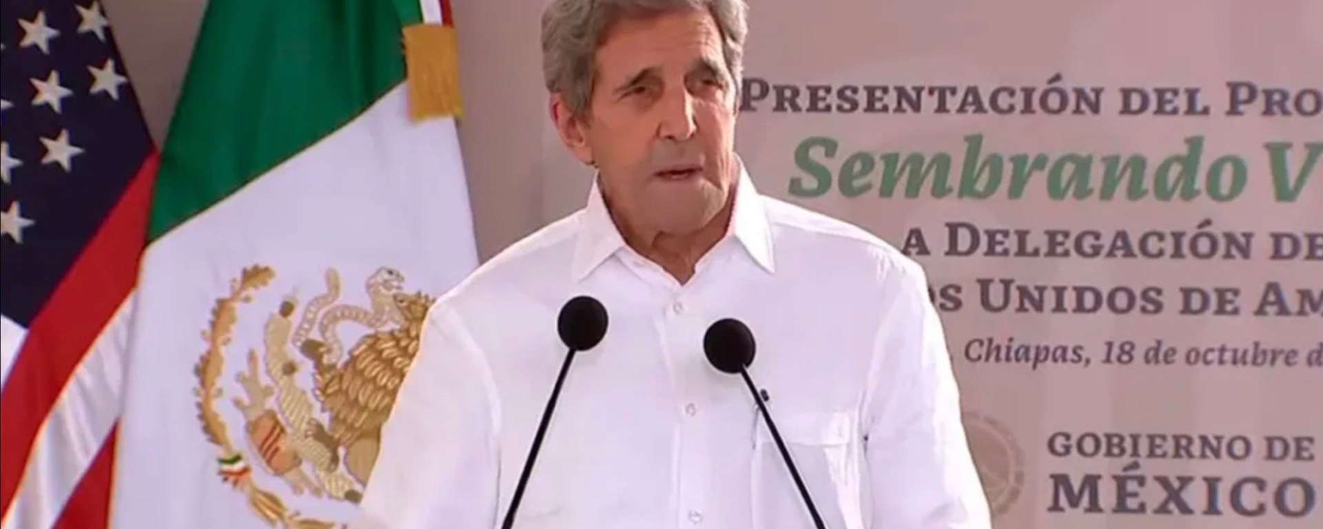 “Tomar acción en todos los sectores de la economía y pasar a una economía de cero emisiones ofrece oportunidades y es lo mejor para nuestras vidas”, expresó Kerry en un evento junto a López Obrador y altos funcionarios mexicanos en Palenque, Chiapas.