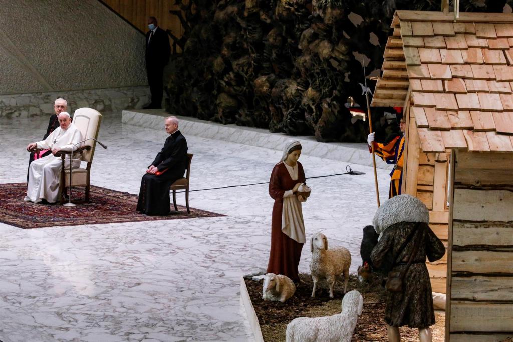El papa explicó que el pesebre significa que “Dios se revela no como alguien que se alza en lo alto para dominar, sino como aquel que se rebaja, pequeño y pobre, para servir” .