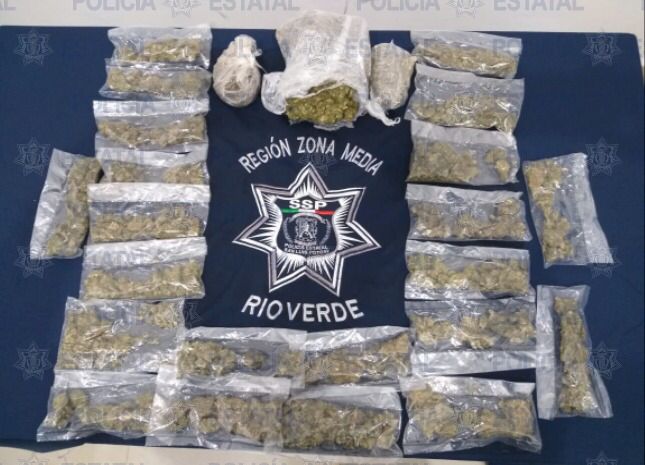 Por su parte, en la zona Media, en el municipio de Ciudad del Maíz, agentes Estatales detuvieron a Héctor N., de 47 años de edad, por presunta posesión de 890 gramos de marihuana, también se les aseguró un vehículo Volkswagen, tipo Jetta, color gris, modelo 2013, con placas de Tamaulipas, lo anterior como resultado de los operativos preventivos realizados en las calles San Juan Diego y Santa Martha, en la colonia Buenos Aires.